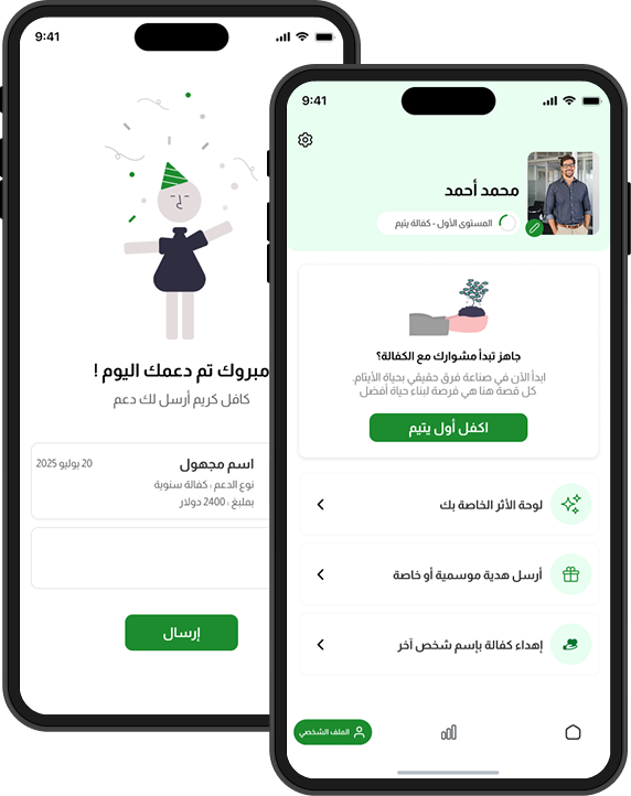 تابع تفاصيل كفالتك، تبرعاتك، وتحديثات اليتيم الذي تدعمه بكل وضوح.